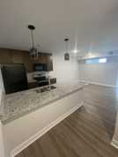 Large one bedroom one bath apartment with laminate flooring throughout. Open kitchen has laminate hardwood flooring, granite countertops, stainless steel/black appliances, stove, refrigerator, dishwasher, and microwave. Nice size bedroom has walk in closet with stackable washer/dryer. Central Air and Central Heat. Electric, water, sewer/trash, and internet is included. NO PETS!