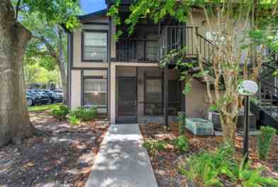 Discover this well-maintained first-floor 2-bedroom, 2-bath condominium located in the sought-after North Oaks community. The spacious open floor plan features a combined living and dining area highlighted by a cozy wood-burning fireplace. Enjoy laminate flooring throughout with tile in the kitchen and baths—no carpet anywhere. The kitchen offers stainless steel appliances and a convenient breakfast bar. The primary suite includes a walk-in closet and a private ensuite bath, while the second bedroom sits adjacent to the second full bathroom. Relax on the screened front porch with a laundry closet for added convenience. Community amenities include a pool, tennis courts, and racquetball courts, all shaded by beautiful mature oak trees. Ideally located near USF, VA Hospital, Moffitt Cancer Center, AdventHealth, shopping, dining, and easy access to I-75 and I-275. Owner requires 24 hour notice for showings.