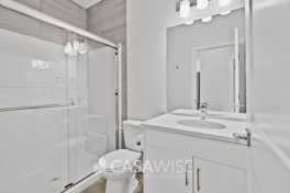 ? Upper-level main bathroom with modern fixtures.