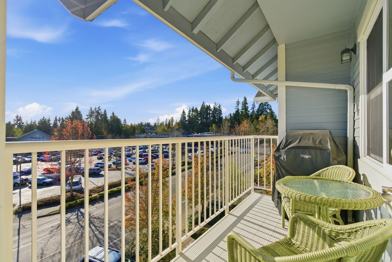 Top-floor condominium with bright, southern exposure and bird's eye view. Centrally located--shops, library, public swimming pool, park, transit all within blocks; about a mile to the Seattle ferry. Spacious open floor plan, great kitchen and large bathroom. Covered deck, secure lobby entrance and garage parking. Water, sewer, garbage included. Laundry in unit.
