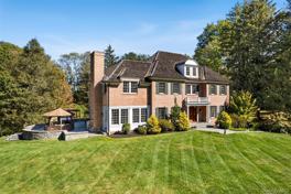 Privately gated and masterfully crafted, this exceptional custom brick estate is a showcase of timeless elegance and grand-scale living, nestled on over two acres in the heart of Chappaqua. Beyond the cobblestone apron and curbing, a sweeping driveway leads to a residence designed for both luxury and comfort, boasting soaring 10-foot ceilings, four stately fireplaces, exquisite architectural detail, and refined finishes throughout. Enter through a breathtaking grand foyer, where gleaming hardwood floors with intricate wood inlay medallion set the tone, and a dramatic three-story suspended spiral staircase anchors the home in architectural splendor. The main level is ideal for entertaining, offering a formal living room, formal dining room, an expansive family room with a custom bar, and seamless access to a private bluestone patio, perfect for indoor-outdoor gatherings. The chef's kitchen is a culinary masterpiece, featuring high-end appliances, breakfast area, butler's pantry, and dual access points to the patio. A main-floor guest/au pair suite, private office or den, and powder room complete the level. Upstairs, the serene Master Suite is a retreat unto itself, complete with a sitting area, dual walk-in closets, and a spa-like marble bath with heated towel racks, dual vanities, clawfoot soaking tub, and an oversized glass shower. Three additional generously-sized bedrooms, one with an ensuite, and a full hall bath, along with a dedicated laundry room, offer both comfort and convenience. The third floor adds a spacious game and media room, while the walk-out lower level features a gym, mudroom, recreation space, sitting area, and access to the beautifully landscaped backyard. Outside, enjoy artisan stonework, multiple patios, a gazebo, hot tub, built-in BBQ station, and lush, level grounds ideal for entertaining and play. Three heated garages, including an electric vehicle charging station, complete this extraordinary masterpiece with modern convenience and sophistication. Located just minutes from Chappaqua's charming village center, award-winning schools, fine dining, shopping, Mt. Kisco Country Club, Metro North, and major highways. This is a a rare opportunity to lease one of Chappaqua's most distinguished estates, an architectural triumph of timeless sophistication and commanding presence, set within one of Westchester's most coveted communities.