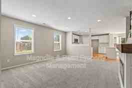 Open-concept living area with luxury vinyl plank (LVP) flooring and neutral paint throughout