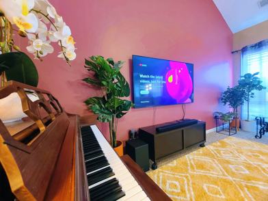 Enjoy a private king suite on the main floor, three elegant queen bedrooms upstairs (two with full privacy, one open with a sofa bed and dedicated workspace), walk-in closets.