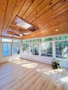 Enjoy the outdoors in your fenced backyard surrounded by trees, or relax in the glass-enclosed sunroom with stunning wood ceilings and skylights, a perfect spot for reading or morning coffee. The home also features a front porch and an attached one-car garage.