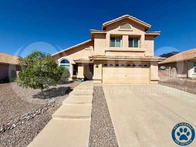 Available Now! Step inside this expansive 2,930 square foot two-story home offering 5 bedrooms and 3 full bathrooms in Tucson’s desirable Ponderosa neighborhood. The home’s open-concept design on the ground floor features a bright living room with a striking stone fireplace and hardwood floors, flowing seamlessly into a well-appointed kitchen with a refrigerator, stove/oven, dishwasher, and built-in microwave, plus ample cabinetry and a central island ideal for meal prep and casual dining. A private ground-floor bedroom and full bathroom provide convenience for guests or multi-generational living. Upstairs, the generous primary suite includes a walk-in closet and a split master bathroom, while three additional bedrooms share a full bathroom, offering comfort and privacy for family or roommates. The dedicated laundry room is equipped with a washer and dryer, and whole-home Ac ensures year-round comfort; a water softener is located in the garage. Parking includes a 2-car garage with additional storage space. Outside, enjoy a private backyard with a sparkling swimming pool and low-maintenance landscaping, perfect for entertaining or relaxing. Located in the Ponderosa community, residents have easy access to nearby schools, parks, dining, and shopping, with convenient connections to major Tucson roadways.