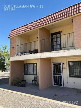 810 Bellamah Ave Nw #11, Albuquerque, NM is a 1 bedroom, 1 bathroom apartment for rent. It is located in the Wells Park neighborhood of Albuquerque. It has apartment amenities including balcony, carpet, and on-site laundry. Dogs are allowed, making it a pet-friendly apartment.