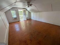 Affordable and conveniently located, this upstairs studio apartment offers a private entry and functional living space. Situated above a detached garage behind the main residence, the unit features a bright open floor plan with original hardwood floors, large windows, and a versatile layout. The kitchen includes a full-size refrigerator, stove, and sink with plenty of natural light. A full bathroom with a walk-in shower and a closet for storage add practicality. Window A/C and wall-mounted heat are installed for year-round comfort. Exterior stairs lead to a private entrance with a small landing. The property is offered in as-is condition. Ideal for someone seeking a simple and affordable living space close to downtown Dawsonville, shops, and dining. Studio layout with open living/sleeping area Full kitchen with refrigerator and stove Full bathroom with stand-up shower Storage closet Wall unit A/C and heater Private exterior entrance Convenient Dawsonville location