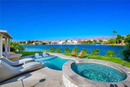 Lake Front Home!Terra Lago Lake One Story Detached Pool/Spa Home by Woodside, Former Model. Featuring 4 bedroom, 3 beautifully updated baths with East Facing Leisure view of Lake, Mountains and Terra Lago's Signature bridge. Updated Chef's Kitchen with center island, quartz counter tops, Newer Stainless Steel appliances, Fridge Included. Spacious Great room, dining area. The primary bedroom offers Lake, Mountain view! Walk in closet, the large ensuite primary bath offers updated vanity with dual sink, separate tub and shower. 3 Guest Bedrooms all with walk in closets. Built in speakers. Sep outside to the private large entertainers back yard with grass area, salt water pool & spa, Recent upgrades include newer laminated flooring and paint throughout, Solar, tankless water heater, newer AC System! Aluma wood patio cover with misters. Great Location, walk to Clubhouse, easy access to Avenue 43 gate for shopping, dining, entertainment, nearby New Acrisure Arena for awesome concert events, Ice Hockey and more! Terra Lago allows Short Term Rentals. Resort Style Living At Its BEST!!!