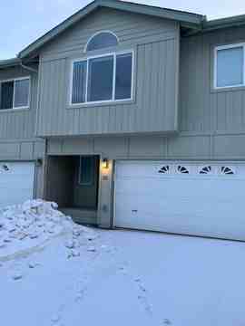 Darling corner unit in down-town Wasilla! Offering 3 bedrooms, 2 full baths, 2 car garage, vaulted ceilings, laundry room, back deck and more! Incredible views! New flooring through out ,Paint , appliances heating system inspected, ready to rent!!! Water , garbage and snow plowing included. Please Text 907-351-9820 for privat showing.