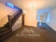 Enjoy a bright open living area, updated light fixtures, and a kitchen with beautiful wood cabinetry, ample counter space, and a cozy brick accent wall. The main-floor bathroom features a washer and dryer for convenience only (not maintained by the owner). Upstairs offers roomy bedrooms with great natural light and additional storage.