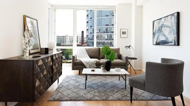 Theres an immediate sense of peace when you step into this home. Maybe its the abundance of natural light, the soaring ceilings, or the clean, open flow of the space. It feels calmbut never cold. The kitchen is a study in simplicity and elegance: sleek, modern, and thoughtfully designed with high-end appliances and room to move. Whether you're cooking or just passing through, it always feels effortless. The bathrooms feel intimate and serene, with soft textures, refined finishes, and layouts that invite ease and comfort. From wellness-focused amenities to rooftop retreats and concierge-level services, this home offers a quiet kind of luxuryone that makes daily life feel more intentional, more grounded. HOTOS RESEMBLE FINISHES! PRICING AND AVAILABILITY CAN BE SUBJECT TO CHANGE! NET EFFECTIVE PRICE MAY BE REFLECTED. BOOKSELF FLEX APARTMENT!