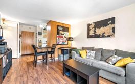 Enter the apartment and immediately fall in love with the sun-filled living room. There are large windows throughout the living room which allow tons of natural light to pour in and make the entire space feel incredibly open and bright. There is wide-plank flooring which flows continuously throughout this space and adds the perfect modern touch.