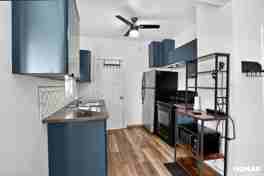 - Included amenities such as a washer, dryer, refrigerator, exhaust hood, baker’s rack with extra power outlets, microwave, and electric stove top, making daily living a breeze.
