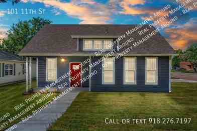 Welcome to this stunning new construction home located in the heart of Historical Claremore. This property boasts two spacious bedrooms and two full bathrooms, perfect for modern living. The home is light and bright, with luxury wood flooring throughout, creating a warm and inviting atmosphere. The kitchen is a chef's dream, equipped with a gas stove and a refrigerator. The property also includes a one-car garage, providing ample storage space. This home is not only bright and clean but also situated in a prime location, offering easy access to local amenities. Experience the perfect blend of history and modernity in this beautiful Claremore home.