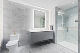 • Modern Floor-to-Ceiling Tiled Bathroom with Oversized Walk-in Shower