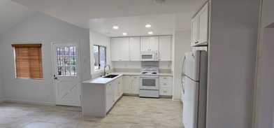 Charming 3-bed, 2-bath Single-Level home tastefully remodeled throughout. The bright kitchen features white cabinetry, quartz countertops, and matching white appliances for a modern, cohesive look. The open floor plan connects seamlessly the living, dining, family retreat & kitchen area. Enhanced by natural light from large windows & a glass-panel back door leading to the private yard. New flooring, New vanities, recessed lighting, and fresh paint create a warm and inviting atmosphere. Move-in ready and perfect for comfortable, modern living. The large backyard and patio make it ideal for outdoor entertaining. A perfect blend of charm and contemporary design.