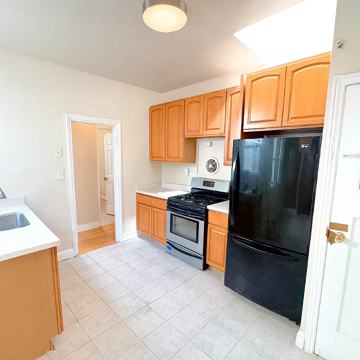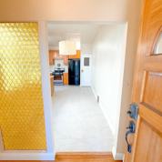 Remodeled kitchen with new gas stove, countertops, and cabinets. Large living room and separate dedicated dining / office room connected to a central atrium with skylight.