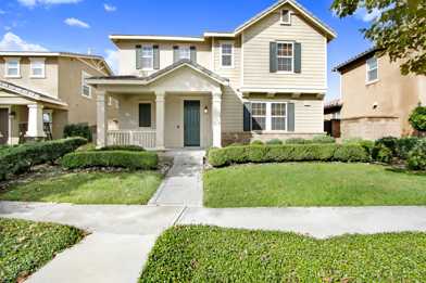 A beautifully maintained two-story home offering a perfect blend of comfort, space, and modern touches. Located in a desirable North Fontana neighborhood, this home provides a warm and inviting atmosphere from the moment you walk in. The open floor plan features a large living and dining area with neutral tile flooring and plenty of natural light ideal for relaxing or entertaining guests. The kitchen boasts ample cabinet space, granite-style countertops, a center island with breakfast bar seating, and a mix of black and stainless-steel appliances, including a gas range and built-in microwave. The main floor features a convenient full bedroom and bath, perfect for guests or multigenerational living. Upstairs, you'll find spacious secondary bedrooms, including a primary suite with a private bath and generous closet space. Additional highlights include fresh interior paint and recessed lighting. Enjoy a private backyard, ideal for relaxing or entertaining outdoors. The community features all of the amenities you can imagine including Gym, resort style pool and Clubhouse. Conveniently located near parks, schools, shopping, and major freeways, this home is ready for you to move in and enjoy.