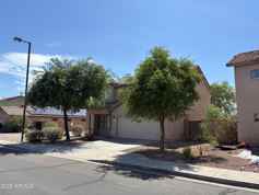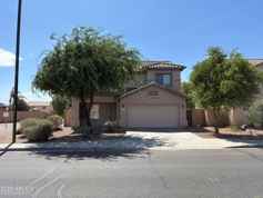 This beautifully maintained home offers over 2000 sqft of living space, with tile flooring throughout and an abundance of natural light. The cozy kitchen is fully equipped with all major appliances and opens to a welcoming dining area, perfect for family meals. Upstairs, enjoy a versatile loft space that can serve as an office, playroom, or additional living area. The master suite features a luxurious en-suite bathroom with a double vanity sink, large soaking tub, and a walk-in shower for your relaxation. The secondary bedrooms are generously sized, providing plenty of room for family and guests. Step outside to a large backyard with a covered patio, ideal for outdoor entertaining or relaxation. The front yard boasts mature landscaping, creating great curb appeal. Conveniently located near all Buckeye has to offer, this home boasts both comfort and style for your next rental!