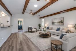 Live every day like you’re on vacation in the coveted Country Place community, where resort-style amenities are part of your everyday life. Residents enjoy a private 9-hole golf course, scenic lake, tennis courts, and pickleball—all covered by the HOA! Inside, sophistication shines with rich engineered hardwood floors flowing through the formal living and dining areas, a cozy family room, and a dedicated home office area with custom built-ins. Modern lighting fixtures bring a fresh glow to each space, while the chef’s kitchen is a true showstopper—bathed in natural light from a skylight and featuring a gas cooktop, Quartz countertops, stainless steel appliances and beautiful cabinetry. The primary suite offers a private retreat with a spacious walk-in closet. Two front bedrooms share a stylish bath, while a separate guest suite boasts its own bath and walk-in closet—perfect for visitors or multigenerational living. The additional space off the kitchen adds even more flexibility, serving as a game room with a full bath or could be used as an additional fifth bedroom. Step outside to your backyard oasis with lush landscaping, a sparkling pool with flagstone edging, and a covered deck complete with a fully equipped outdoor kitchen. Entertaining has never been easier! For added peace of mind, the foundation has been repaired with a transferable warranty, and the home features an all-new PVC plumbing sewer line. Practical perks include a two-car carport and energy-efficient solar panels that will be paid off at closing, giving you instant savings. This home truly has it all—style, space, and lasting value in one incredible package!