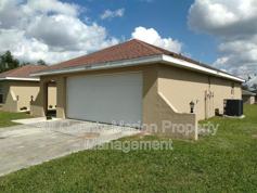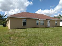 This home features four bedrooms, three bathrooms, and a two-car garage. It has been freshly painted both inside and out and boasts new flooring throughout the bedrooms, with tile in the living areas. The kitchen is equipped with new appliances and ample cabinet space. The primary bathroom offers a two-vanity sink, garden tub and a walk-in glass shower. Additionally, the home includes a new central AC unit and cathedral ceilings, which add to its spacious feel.