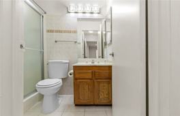 The primary suite offers a walk-in closet and en-suite bathroom, while the second bedroom is bright and spacious. Enjoy in-unit laundry hookups, central air and heat, and two secure garage parking spots.