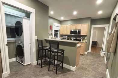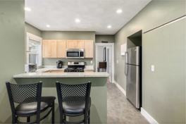This home offers a central air conditioning system, in-unit laundry. The eat-in kitchen is fully equipped with a refrigerator, stove, microwave, dishwasher, garbage disposal, and even a mini bar.