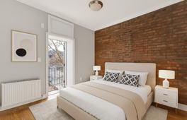 Beautifully updated 2-bedroom, 2-bath featuring exposed brick, hardwood floors, and high ceilings. The modern kitchen includes a dishwasher, microwave, and sleek finishes, while the private balcony offers perfect outdoor space. Located in the heart of the East Village, steps from restaurants, nightlife, and shopping, and minutes to Union Square and the F, N, R, J, Z, and 6 trains.