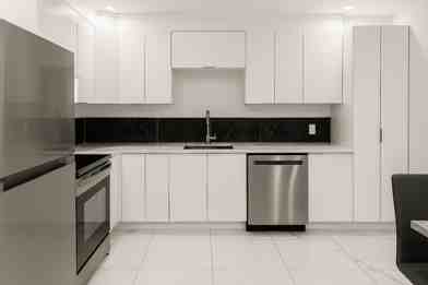 The outside has been painted light grey & the interior of the apartment has been freshly repainted as well. NEW quartz countertop has been added!