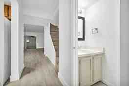 The home features wood-style flooring, ample natural light, and plenty of storage space. Upstairs you’ll find two comfortable bedrooms and a full bath, washer and dryer, while the downstairs includes a convenient half bath for guests.
