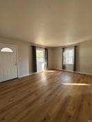 Adorable 2-bedroom, 1-bath home with a detached 2-car garage located near the U of E campus. The covered front porch entry leads into a spacious living room featuring luxury vinyl wood flooring, a large picture window, and fresh, tasteful paint. The eat-in kitchen offers updated cabinetry, a ceramic tile backsplash, a ceiling fan with light, and stainless steel appliances. Just off the kitchen is a large utility/laundry room with access to the backyard. Both bedrooms have LVT flooring and freshly painted walls, and the bathroom includes a tub/shower combination with a built-in hallway linen cabinet nearby. The detached garage includes a built-in workbench and storage cabinets, perfect for projects or extra storage. This home requires a 1-year lease with a matching security deposit, along with an approved credit and background check. No smoking or pets permitted.