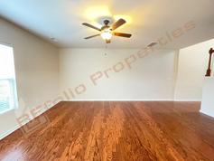 Upstairs, you’ll find a large owner’s suite with a walk-in closet and an oversized shower. Ceiling fans in both the family room and primary bedroom provide added comfort. Refrigerator and window blinds are included in the rent.