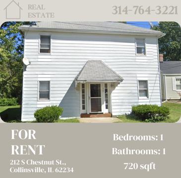 12 Month Lease, $1,100 deposit, Available Oct 31 Welcome Home to 212 S Chestnut St., Apt. 4 Collinsville, IL 62234 Monthly Rent: $1,100 | Lease Term: 1 Year | Initial Payment: First Month's Rent + $1,100 Security Deposit Discover the convenience of living in the heart of Collinsville, where everything you need is just steps away. From public transportation to a variety of dining options, places of worship, and grocery stores, your new home offers unparalleled accessibility. Plus, enjoy the unique charm of being close to The World's Largest Catsup Bottle, adding a touch of local flair to your neighborhood. Inside, you'll find comfort and space with a layout that includes an inviting eat-in kitchen, a cozy living room, a peaceful bedroom, and a convenient bathroom. Each unit also features a private back door entry, providing added security and convenience for residents. Don't wait! Schedule a viewing today and make 212 S Chestnut St., Apt. 4 your new home sweet home. - Utilities included with rent: water, sewer, trash, central heat via furnace