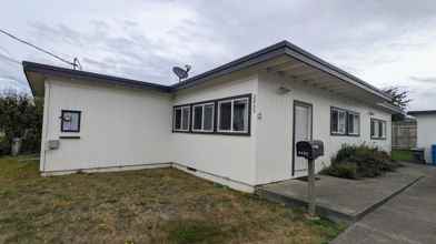 This comfortable 3/2 is located conveniently between Henderson Center and Hwy 101 and has newer vinyl plank flooring and double pane vinyl windows. The entry leads into a spacious living room with the kitchen beyond. The kitchen has a gas range, large fridge, plenty of cupboards and also contains the existing washer and dryer. The primary bedroom with the ensuite bathroom is on one side of the house, and the other two bedrooms and bathroom are towards the back of the house. A detached garage offers storage, and optional parking. The yard is not fenced, so a well behaved indoor animal will be considered with good references.