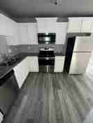 The kitchen is fully equipped with stainless steel appliances, including a refrigerator and electric oven, making meal prep a breeze. Adjacent to the kitchen, you'll find a dedicated dining room ideal for hosting dinner parties or enjoying family meals.