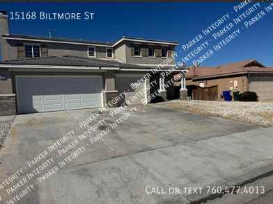 15168 Biltmore St is a 4 bedroom, 3 bathrooms apartment for rent. It is located in Adelanto. It has apartment amenities including assigned parking, ceiling fan, walk-in closets, and on-site laundry. Cats and dogs are allowed, making it a pet-friendly apartment.