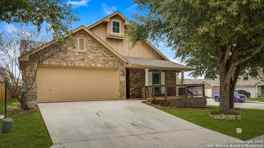 Exceptional value for a stunning brick home, corner lot offers an abundance of upgrades and details throughout to include solar panels and Amazing backyard oasis. At the front, a private study with French doors provides the perfect workspace. The expansive family and dining rooms showcase engineered hardwood floors, seamlessly divided by a striking rock accent wall. The island kitchen features luxury vinyl flooring, stainless steel appliances, and a bright, open layout leading to the dreamy backyard. Step outside to the covered patio, a 12-person swim spa, gas fireplace, and Tiki-inspired outdoor kitchen-equipped with a gas grill, TV, sound system, and bar seating. Enjoy the koi pond, fruit trees, and Tuff shed. Move-in ready with Solar panels, outdoor lighting system, and yard irrigation! All included with refrigerator, washer and dryer!