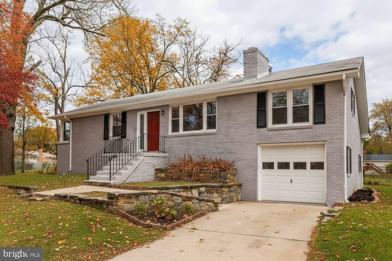Well-maintained raised ranch on a fenced corner lot in Bradbury Park. This bright 5-bedroom, 3-bath home features an open floor plan, recessed lighting, crown molding, and wood floors throughout. The gourmet kitchen boasts quartz countertops, pendant-lit island, and stainless-steel appliances. The lower level offers a spacious recreation room with walk-out access to the backyard. A detached one-car garage and generous driveway provide plenty of parking. Additional storage shed available for tenant use. Recently refreshed with new paint and HVAC. Secure, convenient location near Metro, schools, and shopping. Available immediately