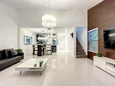 Very sophisticated luxury furnished 2-bedroom townhouse in a prestigious and peaceful area of Dr. Phillips, offering the perfect balance of tranquility and proximity to everything you need. Professionally and interior decorated with Italian porcelain floors downstairs and laminated flooring upstairs. It also features luxurious light fixtures, smart TVs, a gourmet kitchen, and a beautiful terrace to enjoy Florida weather.