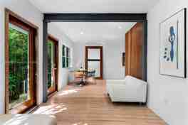 South of Fifth Beach Bungalow located on a premiere quiet block, nestled in a lush tropical botanical garden. This 1BD/2BA, 922 SF sanctuary blends natural textures with modern design. Warm white oak floors and Ipe wood walls create a serene, organic backdrop accented by Italian custom-built furniture and décor. The kitchen is a showpiece, featuring green marble counters, floating cabinetry, Blanco sinks, and a Fulgor Milano oven. The blue Spanish-tiled bathrooms with skylights evoke coastal Mediterranean charm, while the LG laundry area and Whirlpool dishwasher add everyday convenience. Experience true Miami Beach living in the heart of SoFi: a coveted area that is just steps to world-class dining and the beach.
