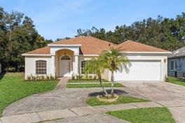 FOR RENT - This beautifully updated single-story home offers 3 spacious bedrooms and 2 modern bathrooms across 1,847 square feet of living space. Recent upgrades include a new roof, well-appointed kitchen with quartz counters, new appliances, elegantly updated bathrooms, and AC system, ensuring comfort and peace of mind for years to come. The open floor plan is enhanced by cathedral and vaulted ceilings, creating a bright and airy atmosphere throughout. A split-bedroom layout provides privacy, with the primary suite serving as a serene retreat, complete with elegant crown molding and a bathroom en-suite with a luxury soaking tub, dual sinks and an oversized walk-in closet. The circular driveway adds curb appeal and convenience, complemented by a roomy 2-car garage. Durable tile flooring flows throughout the home with wood laminate in the additional 2 bedrooms. Situated on a generous 0.28-acre lot in a welcoming neighborhood ideal for comfortable living, this home blends timeless charm with thoughtful updates.