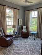 versatile den is perfect for a home office or reading nook. Step outside to the screened lanai and enjoy peaceful lake views and lush landscaping —an inviting spot to unwind after a day in the sun. Additional highlights include a two-car garage with an epoxy-finished floor, roll-down storm