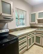 - A well-equipped kitchen featuring a refrigerator, electric range, and exhaust hood, perfect for whipping up your favorite meals