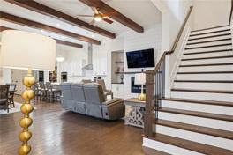 Open-Concept Elegance: The heart of the home dazzles with 12-foot ceilings, gleaming hardwood floors, and architectural ceiling beams that add charm to the seamless living, dining, and gourmet kitchen spaces. The chef's kitchen boasts a double oven and abundant counter space, perfect for hosting unforgettable gatherings.