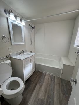 This is a one bedroom, one bathroom efficiency apartment with a kitchenette. Minimum lease is three months. All utilities are included. Shared coin-op laundry on site as well as security cameras.