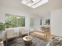 A bright and sunny apartment in a private, gated, 1 story, 3 unit building with a lush courtyard with water features and a common back yard. The apartment is located in the Ocean Park area of Santa Monica- an easy stroll to the beach and Main Street with eclectic shops, restaurants, Sunday morning open market, museum, etc. The unit is minutes away from Abbot Kinney with it’s boutiques, interesting shops and restaurants and also minutes from downtown Santa Monica and the pier. The unit is a 2 bedroom, 1 bath apartment. It is ideal for someone who wants a live/work environment. The kitchen and bathroom has been recently renovated. Additional features of the unit are a large skylight in the living room, wood floors throughout, french doors that open to a large private outdoor patio. The patio is surrounded by greenery, and perfect for relaxing, rejuvenating, and entertaining friends and family. The apartment is fiber optic cable (FIOS) ready and has a 220v outlet for EV charging. There is 1 off street parking space with street parking permits available. Also, there is a common, free laundry facility, Pets allowed if approved by owner.. Additional rent of $50 a month per pet and an additional security deposit of $500 per pet is required. Owner pays for water, sewer and trash. Tenant pays for gas and electric. Renters Insurance is required upon moving in.
