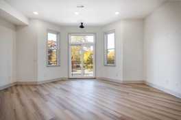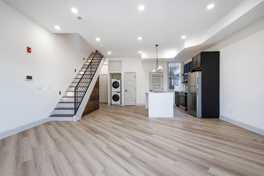 Experience a home where high-end design meets effortless functionality. Every space has been thoughtfully crafted for modern comfort and timeless style. The bathrooms showcase custom mid-century inspired vanities with matte black fixtures, bold patterned tile, and sleek subway tiling in calming shades of gray and sage. Throughout the home, unexpected touches, like oversized floral wallpaper and striking black metal railings and sophisticated flair. The kitchen shines with dark cabinetry, bright stone countertops, and a statement tile backsplash paired with a rustic wood floating shelf. Smart built-in storage under the staircase offers both beauty and practicality. Step outside to your private balcony and take in sweeping views of the tree-lined street and park. Your own serene escape in the city.