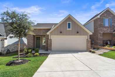 Welcome to this immaculate home, located in the beautiful community of Thunder Rock in Marble Falls. Completed in 2024, only previously occupied for ~1 year by the owner, this home boasts one of the best backyard views available in the neighborhood. Designed with a sleek modern elevation, this 3-bedroom, 2-bathroom home offers both comfort and style in a peaceful hill country setting. Step inside to an open-concept layout with island kitchen, spacious pantry, walk-in closets, epoxy-finished garage floor and all appliances including washer and dryer! Thoughtfully designed landscaping, full green space backyard - great for relaxing, outdoor enjoyment, and bird watching. Please note this home comes unfurnished. Don't miss the opportunity to live in a beautiful, modern home in vibrant Marble Falls!