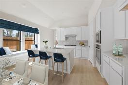 This 2024-built single-story home features four bedrooms and three bathrooms with an open layout and 11-foot ceilings. Large windows throughout the home bring in abundant natural light, and the master bedroom includes a bay window for added brightness. The primary suite offers dual sinks, a walk-in shower, and a spacious walk-in closet. A private fenced backyard with a covered patio and a two-car garage completes the home. Refrigerator, washer, dryer, and other essential appliances are included.