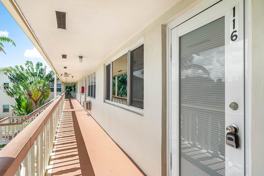 Welcome to this beautifully renovated unit offering a perfect blend of modern design and comfort. Step inside to brand-new flooring throughout, a custom-built walk-in closet, and a sleek new kitchen featuring wood waterfall countertop island. Enjoy peace of mind with hurricane-impact windows and doors, providing both safety and energy efficiency. The spacious bedroom features abundant natural light, upgraded window treatments, and a fully remodeled ensuite bathroom with floor-to-ceiling marble-style tile and a glass-enclosed shower. Relax on your private balcony -- perfect for morning coffee or evening sunsets. Conveniently located near shopping, dining, and major highways, this residence offers modern living in a quiet, well-maintained community.